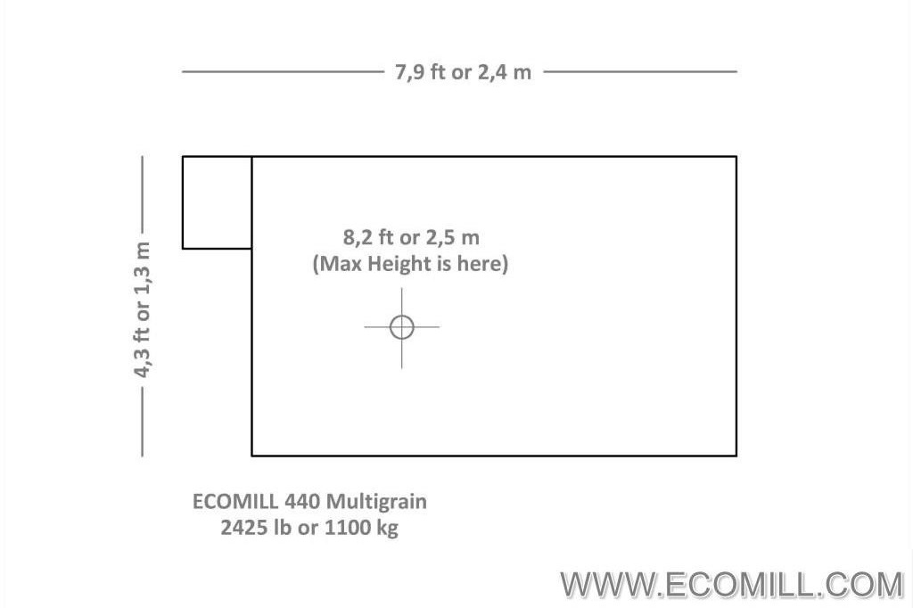 Specialized buildings are not necessary. Existing warehouse style buildings with the mill installed on a single floor and minimal height clearance is a standard for this mill. The mill combines minimal electrical consumption and easy portability with an elegant design.