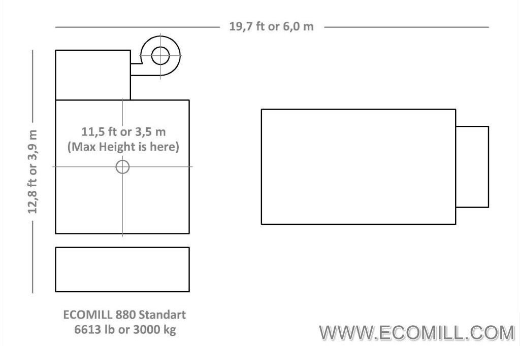 Specialized buildings are not necessary. Existing warehouse style buildings with the mill installed on a single floor and minimal height clearance is a standard for this mill. The mill combines minimal electrical consumption and easy portability with an elegant design.
